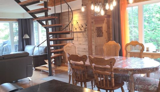 Spacieux et chaleureux, le chalet offre une aire de vie conviviale et lumineuse :