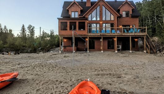 Sur notre immense terrain de 7 500 000 pi2, nous avons 6 gros chalets de luxe de 6 chambres pour 20 personnes, tous identiques et tous situés directement sur le bord de notre superbe lac White Rocks avec tous leur propre quai. Avec tous nos éléments récréatifs détaillés ci-bas, vous ne vous ennuierez pas, même les jours de pluie!