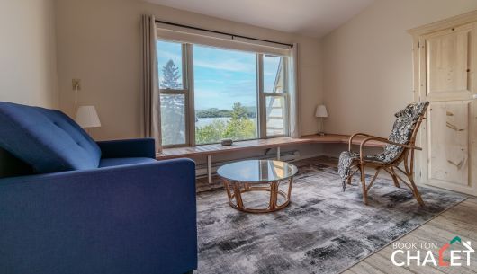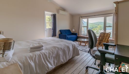 Chambre #8 : 1 lit queen, 1 sofa-lit double, salle de bain privée, vue du lac et terrasse